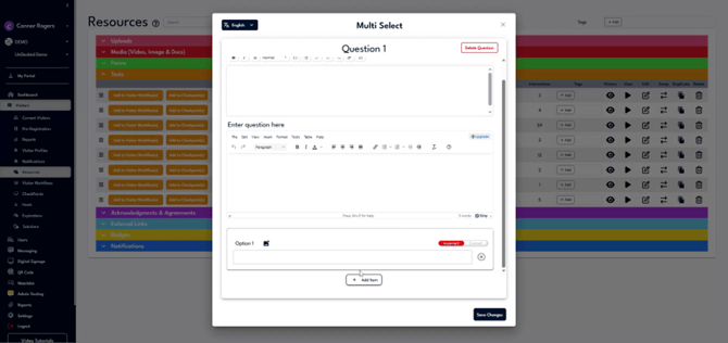 Notifications can be triggered during check-ins, workflows, or other platform actions, and can be delivered via text message, digital signage, email, or Teams integrations. To create a new notification, click "Add New," name it, assign the workflow and trigger, and select the notification recipients.