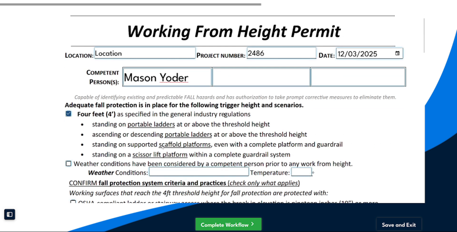 To ensure your documentation is always accurate and up-to-date, you can explore this feature by opening an assignment that has been allocated to you. For instance, you might have a work-from-heights permit assigned to you.